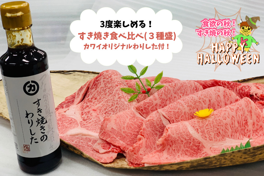 - すき焼き食べ比べ(3種盛)【カワイオリジナルわりした付】がお買い得!