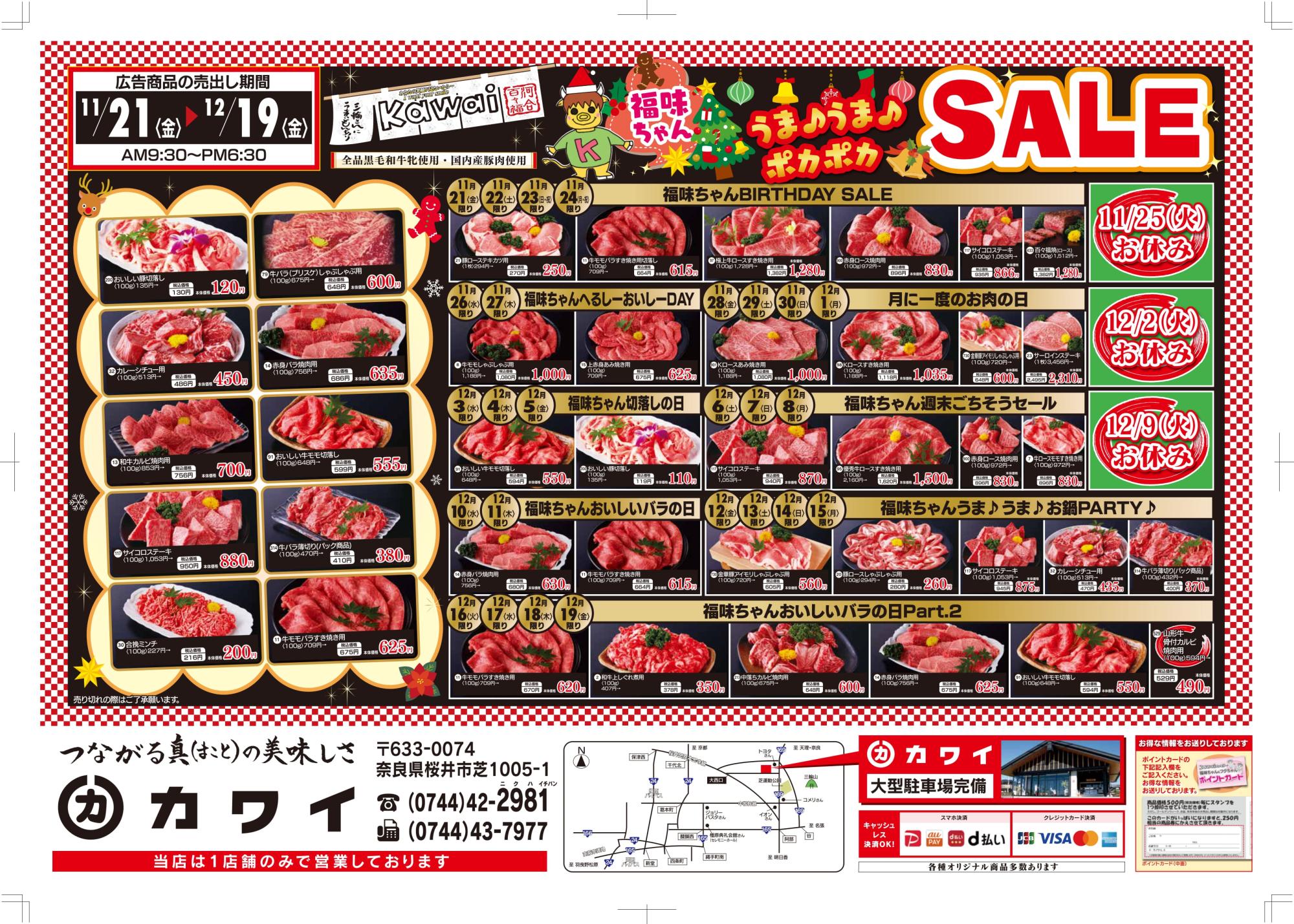 お買い得いっぱい!! 最新のチラシを見る 2025.11.20(オモテ)※チラシの価格はご来店価格となっております。 PDFダウンロード 2025.11.20(ウラ)※チラシの価格はご来店価格となっております。 PDFダウンロード